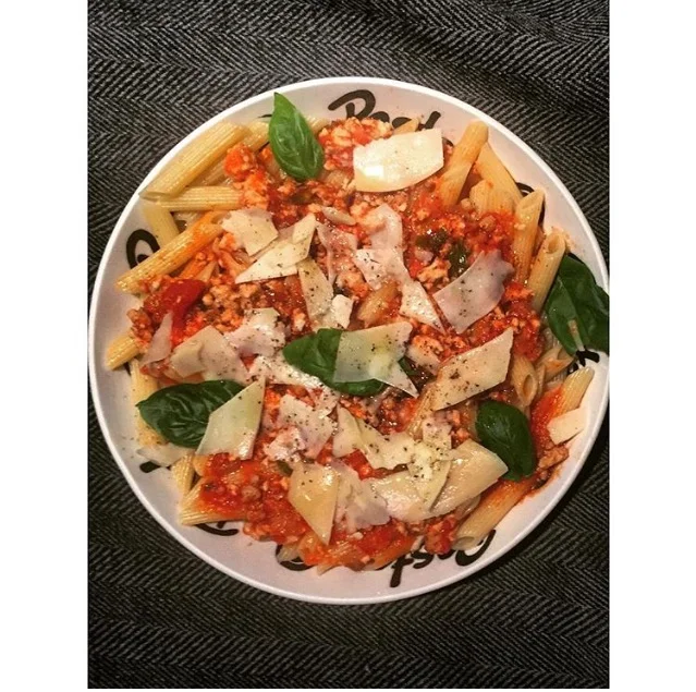Prepare the pasta noodle of your choice, top with sauce, garnish with fresh parmesan.