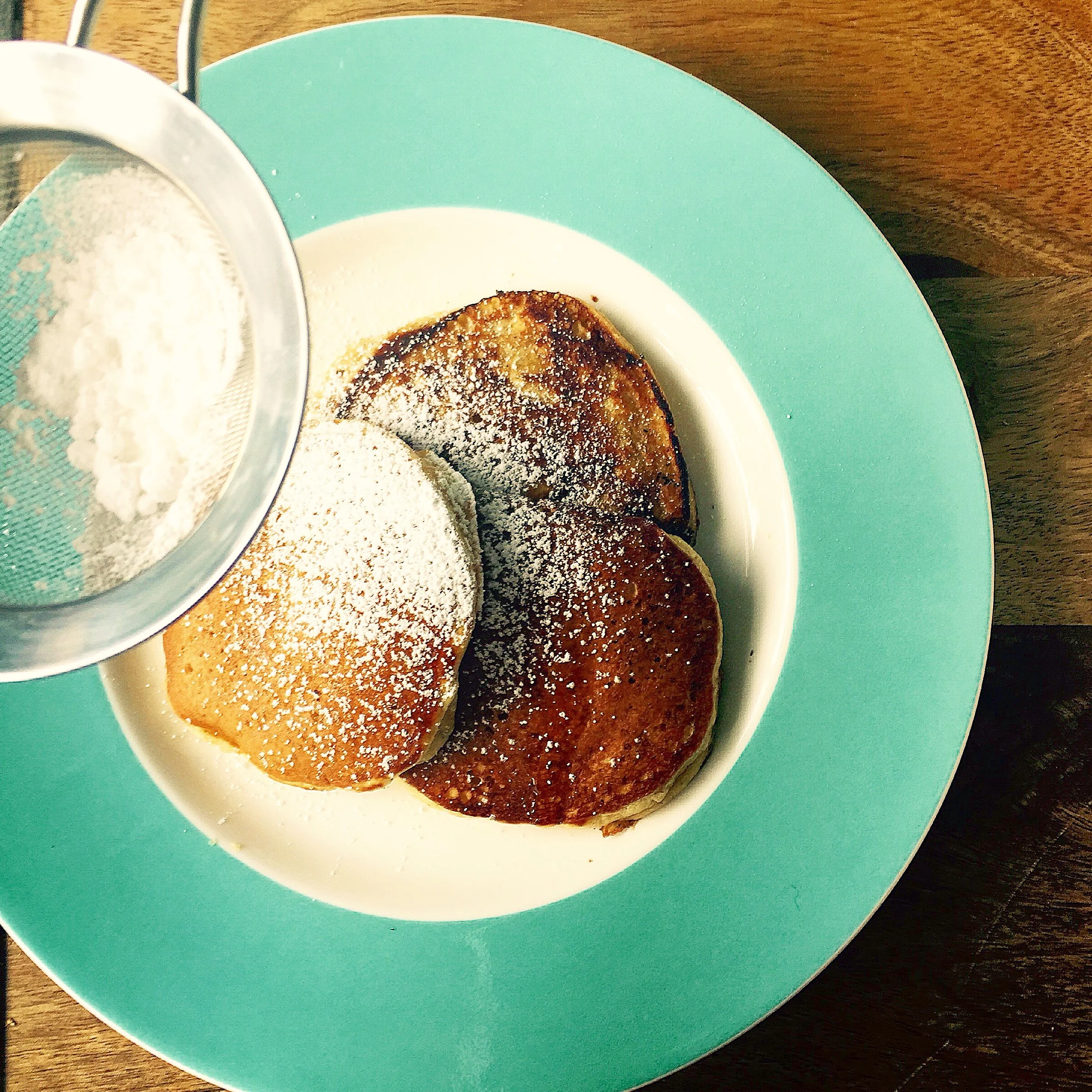Bring a cast-iron skillet to medium-low heat. Melt the butter in the skillet and ladle in 1/4 cup of batter at a time. Leave at least 2 inches between the pancakes. Carefully flip the pancakes when the edges begin to dry and bubbles form on the top, about 3 to 4 minutes. Use a wide spatula to get underneath the entire pancake and flip.